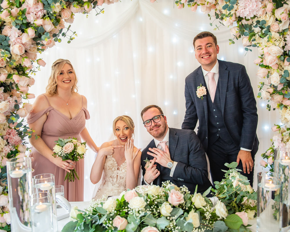 The ceremony room at Kenwood Hall looked amazing with a great big floral arch to get married under. Becky looked amazing in her dress with a beautiful veil. The ceremony was lovely with laughter and emotions before the happy couple headed back down the aisle, after releasing the veil from Becky’s Dad’s foot!