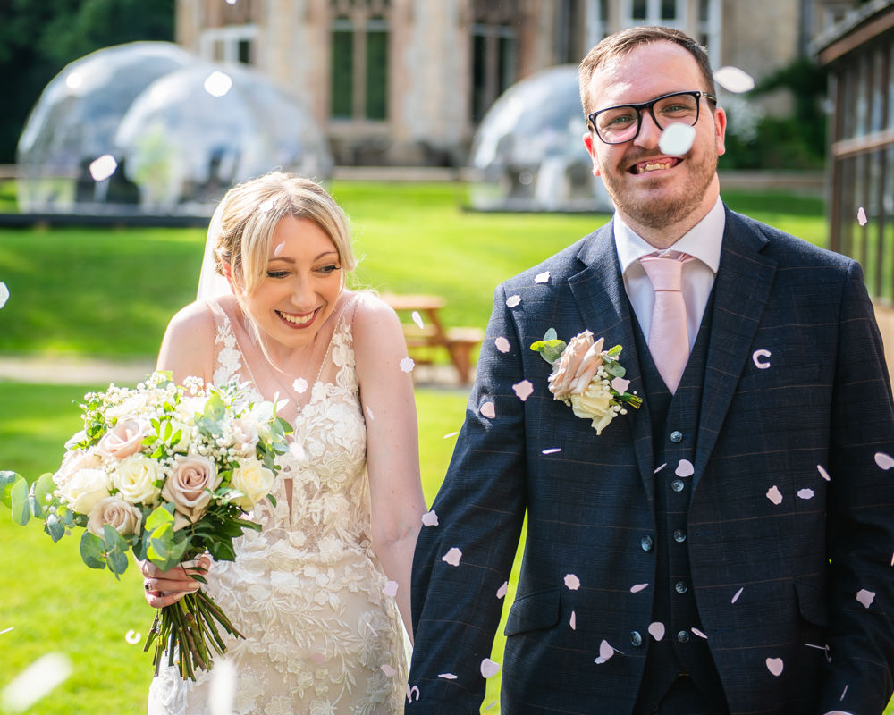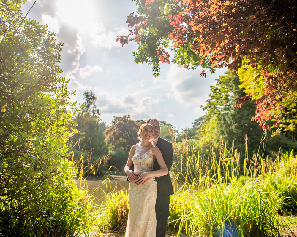 Outside guests enjoyed the sunshine and threw confetti before we headed off for some photos in the grounds and around the lake there. We had lots of fun with veil flick photos!