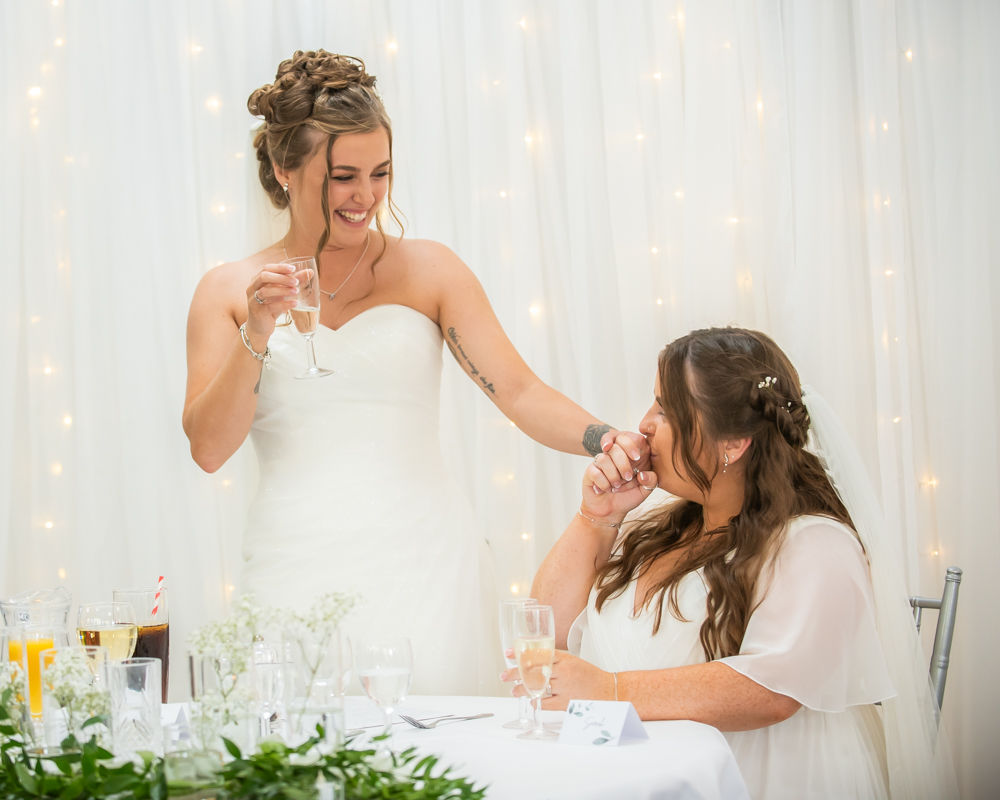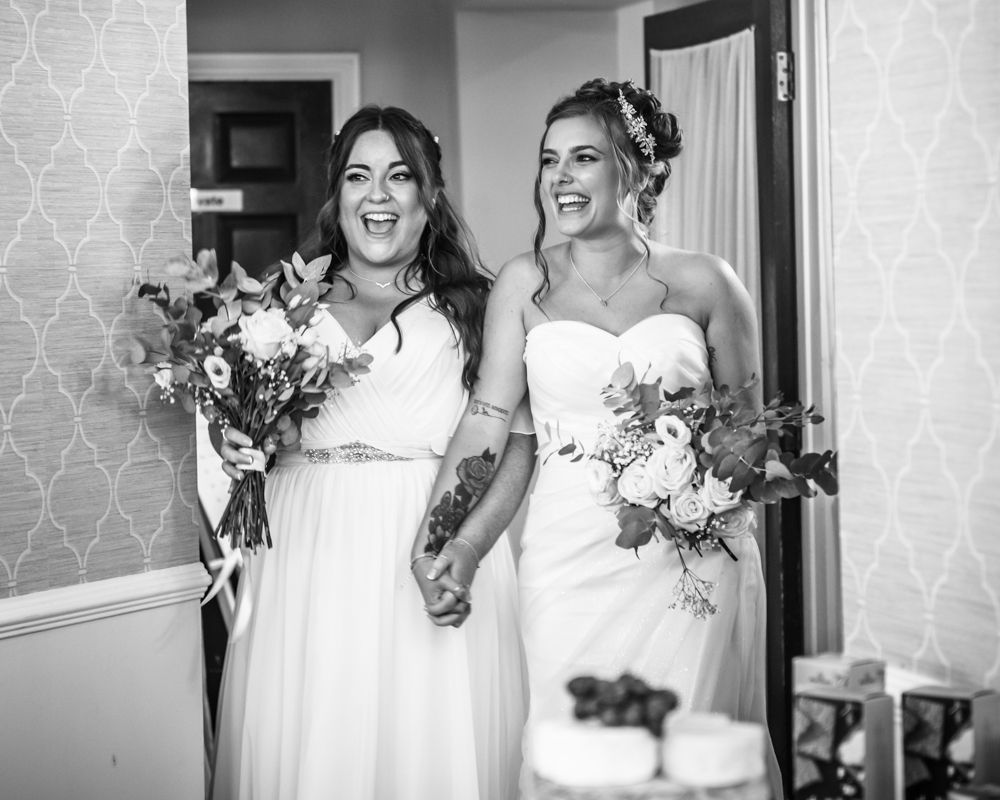 Jodie and Sarah had a room each filled with their “bride squad” so we managed to flit between both rooms for getting ready photos. The excitement was so infectious and both brides looked amazing in their dresses, it was just time for a quick shot before heading off to the Church for the ceremony.