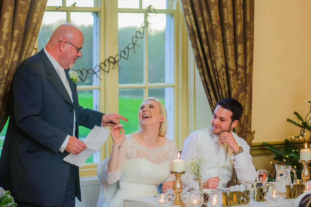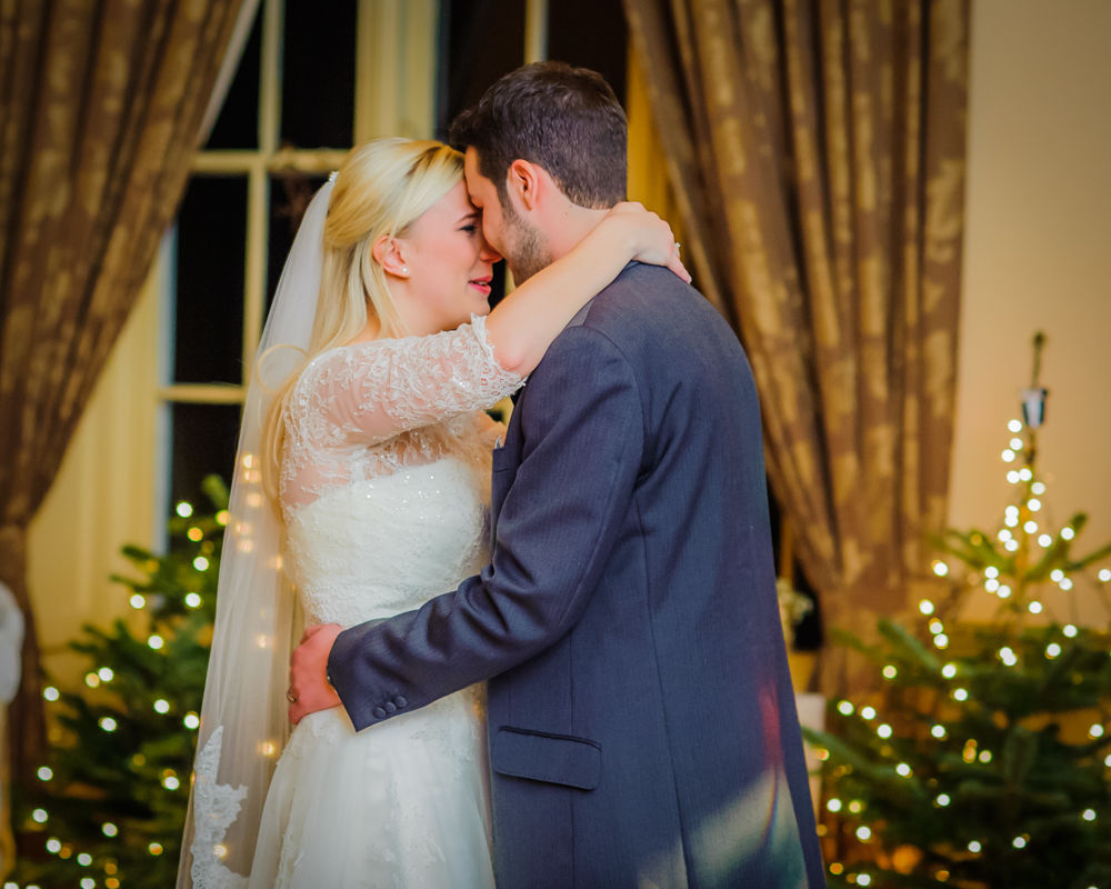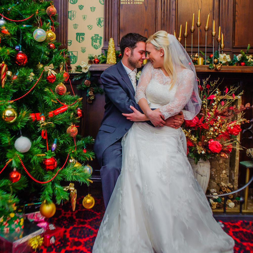 I love a festively dressed reception venue so we took advantage of the Christmas trees and even managed to head outside for some photos too.